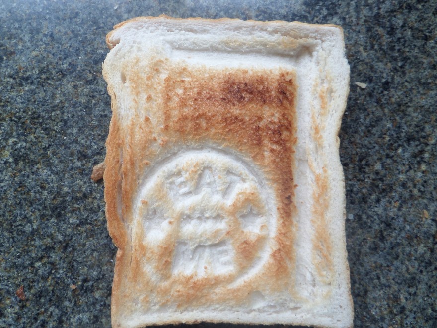 Lucky for me, I found a toast stamp and realised that lettering could only be read one way, so stamping the toast would make the direction signifier only work the way I intended.