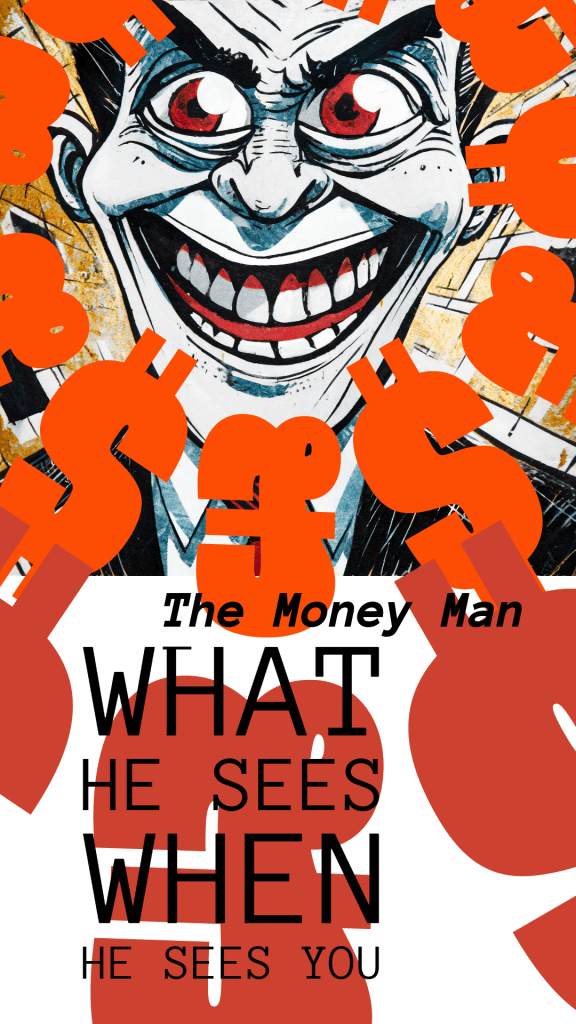 So I made the image above and moved on. The lettering did not work. The £ and $ signs ended up upside down so it kinda missed point. The face was great, but I did not make it, AI did.
