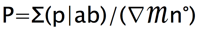 Where P is the path of the walk, as an iteration or repeat of p, which is each leg as a straight line a-b until this is changed by meeting a person (the m is an aboriginal sign for a person, basically, the bottom mark left in the sand where a person was sitting) in which case the path p changes (the triangle) by n degrees.